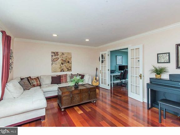 Open House Sunday, March 4th 1-3PM. Come be surprised on the great space in this Bucks County Single. Step through the covered front porch to be greeted by the gleaming wood floors upon entry. The formal living room is accented with crown molding and offers French doors leading into the office. The kitchen boasts plenty of cabinets and endless countertops providing any chef delight. Other highlights include the island center with second prep sink, accent lighting under cabinets and breakfast bar seating. Just off the kitchen is your dining space plus sitting area, providing plenty of room for entertaining. The sunlit family room has windows all around and doors leading to your rear yard. A half bath and laundry room complete this level. Upstairs you'll find four spacious bedrooms and a tastefully finished hall bath. The main bedroom presents a walk-in closet, dressing area, and an en suite bathroom equipped with rain-style shower head. Your living space continues in the basement with a spacious sized rec room and walls of closet storage space. The home is complete with a rear yard offering a paver patio, additional sitting space, storage shed and fencing around.