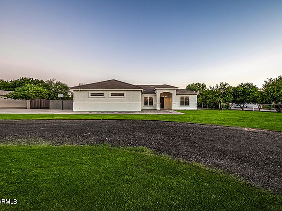 Country feel in the middle of the Gilbert desert! This exquisite horse property is now available in an unbeatable location. This gorgeous remodeled ranch has it all, nearly one acre irrigated property that is already on drip irrigation if you choose not to irrigate, ready for horses, large privacy hedge, amazing remodeled interior, from the stunning white kitchen, soaring ceilings, new wood tile flooring, to the new bathrooms and new flooring, huge master walk in shower and separate tub, large professional built-in refrigerator, incredible pool with a huge built-in slide and waterfall, cozy firepit, work shed, play shed, freshly painted inside and out. This is a rare find for the central location, farm feel, horse privileges and a turn key modern luxury home in Gilbert. Close to shopping, restaurants and freeways and top schools. This home has been loved and cared for by nearly 15 years and is ready to become your dream home.