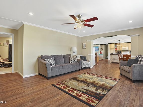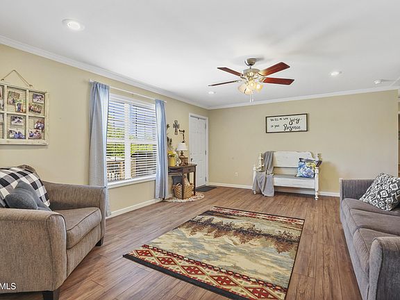 Beautiful manufactured home on permanent foundation sits perfectly on over 1 acre of unrestricted land. The home features open floor plan, upgraded granite countertops & cabinets, double pane tilt windows, crown molding and full drywall inside. Each bedroom has oversized closets. The spacious kitchen has a large island that accommodates six! Fenced back yard with deck. Shed for additional storage. Chicken Coop and gravel/rock firepit. This property has amazing views, room to grow, and quiet space to explore and enjoy nature.