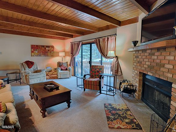 Get your mountain on at this beautifully decorated and fully furnished condo in the heart of Pinetop - Lakeside. This lower level unit offers all the comforts of home and is move in ready for your fun and adventures. Offering a split floor plan with the master suite on one side and two spacious bedrooms on the opposite. The spacious living/kitchen and dining area are open and feature a fireplace to curl up next to on those chilly mountain evenings. A breakfast bar and eat in kitchen is perfect for family and friends. Location is so important and this is just blocks from golf! You like hiking, fishing skiing and more- all of this is your playground. If you are looking for relaxation and great food- Pinetop offers a multitude of great eateries and shops. This is the place to call