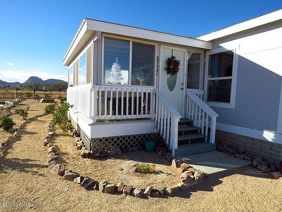 Pride of ownership! NEWLY 2010 CLAYTON home on one acre chain linked fenced w/solar swing gate and 1/3 of the acreage is separated. This 3 bedroom,2 bath split plan, with beautiful large open eat-in kitchen with island, has all new stainless steel appliances, new top of the line pergo laminate flooring. Comfortable windowed enclosed Arizona room and a large covered patio to enjoy the sunsets and Mountain Views. Has Automatic Irrigation System with freshly landscaped, low-maintenance acre with fruit trees, rose bushes, and 2 large storage sheds. Year round or a great seasonal home on an attractive dead end street just off paved road. Central location for easy travel to Ft. Huachuca main gate, Sierra Vista shopping, Medical facilities, Tombstone or Bisbee for great year around activity.
