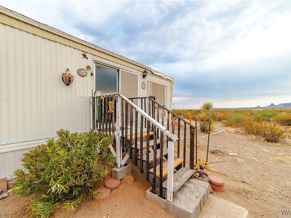 OPPORTUNITY TO ESCAPE!! COME ON OUT TO A RELAXING RURAL AREA OF GOLDEN VALLEY ARIZONA!! SOME OF THE BEST SUNSETS IN THE WORLD!! Predictable weather and affordable living**** This 1.17 ACRE lot is perfectly located just off PAVED SHINARUMP ROAD ** Great place to stay while you build your dream home* ELECTRIC is service by UNISOURCE ENERGY* Propane for the range oven/stove and water heater* GOLDEN VALLEY WATER PROVIDES THE WATER DELIVERY AT THIS TIME AND HAS A CREDIT TRANSFERED FOR 90 DAYS FROM WATER DELIVERY AS A CREDIT* 2 storage sheds* This 2 BEDROOM 1 BATH will be a great little place to call home with the open floor plan, cozy living room with view windows* Dining area off kitchen* the kitchen has propane stove range oven, refrigerator, view window over the double sided sink, nice cabinets and counter-tops** a full size bathroom with vanity and tub/shower combo**In-door laundry area with washer and dryer included * THE GREAT NEWS!! THIS HOMES HAS MANY UPGRADES TOO (NEW HAVAC 5 years ago; NEW WATER HEATER 5 years ago too) 2500 gallon water storage holding tank * HOME DOES NEEDS SOME TLC(Needs all new flooring , oven heating element off a little etc , BUT very livable)** This property offers a unique opportunity to create the lifestyle you've always envisioned.**this property boasts breathtaking views of the BLACK MOUNTAINS * Situated in the tranquil and sought-after community of Golden Valley Ranchos(South side of hwy 68) ** offering a peaceful escape from the hustle and bustle of city life.**Imagine waking up every morning to the sight of majestic mountains and the crisp desert air* Whether you're a nature enthusiast or simply seeking a serene retreat, this location is sure to captivate your heart.*The surrounding area offers a wealth of outdoor activities, including hiking, off-road adventures, and stargazing under the clear Arizona skies. Just a 20 +/- minute drive to Kingman or Bullhead City offering you convenient access to amenities, shopping, and entertainment, striking the perfect balance between seclusion and convenience* a 20 minute drive to Laughlin Nevada/Lake Mohave & Colorado River** DUE TO UNFRIENDLY DOG PLEASE DO NOT APPROACH PROPERTY WITH OUT AN APPOINTMENT* EASY TO SHOW THOUGH**