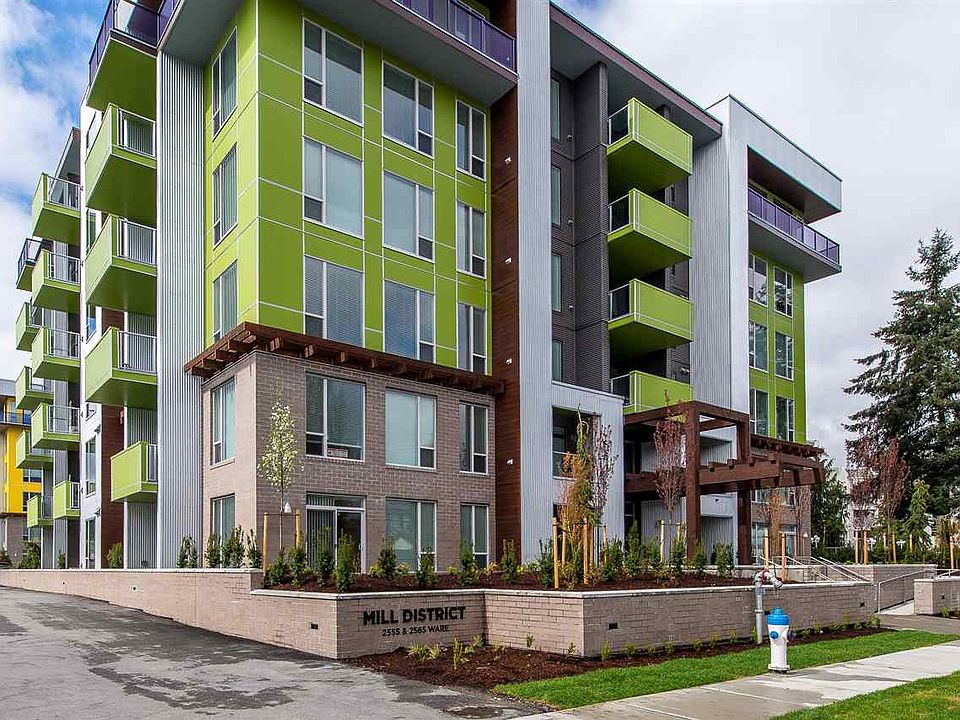 Mill District, a premier collection of 1 to 4 bedroom residences in the heart of Abbotsford's Mill Lake neighbourhood is set to inspire an exceptional quality of life. With Mill Lake at your door step, Seven Oaks Shopping Centre just steps away and a convenient central location, the setting is peaceful and connected. An architectural expression of contemporary style. Mill District pairs engaging details with timeless form. Inside this 2 bed and 2 bath unit, the open kitchen/living room concept is designed to maximize functionality and flow. Good size balcony with gas hookup gets sun all day. GST paid already!