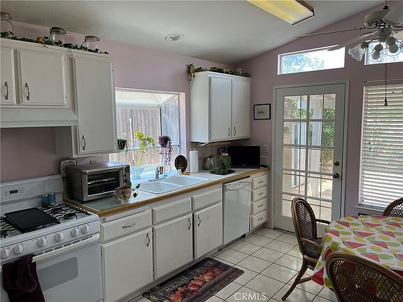 ***Senior Community 55 and older*** Estate Sale 6/20 and 6/21 8am-2pm. Tranquility is what you are looking for! This home provides you with lots of comfort. Great floorplan. 2 bedrooms are converted to one big spacious room which turns it in to two masters. Master bedroom has walk-in closet. Could very easily convert back to 3 bedrooms if needed to. Lovely kitchen includes a garden window to place your beautiful plants. Fireplace just makes the home cozy looking. 2 full bathrooms with low flush toilets. Ceiling fans throughout the house. Garage has cabinets for storage. Washer & Dryer has it's own room with more storage space. Sensational backyard will take your breathe away. Concrete all around. Fruit trees throughout, not to mention all the beautiful plants & palm trees. Shed is included on side yard. Property is also fenced all around. Come take a look! Some of the furniture can stay with the house. Refrigerator stays with the property. Property has a solar lease that will transfer with the property. This house is just right for you!