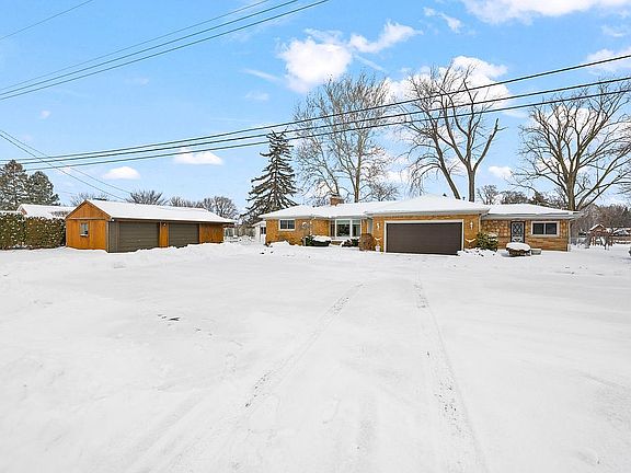 The partially finished basement offers an additional fireplace, full bathroom, a possible non-conforming bedroom, and ample storage throughout. Completing the property is an attached two-car garage, along with a three-car detached garage offering plenty of workspace for projects, hobbies, or extra storage.