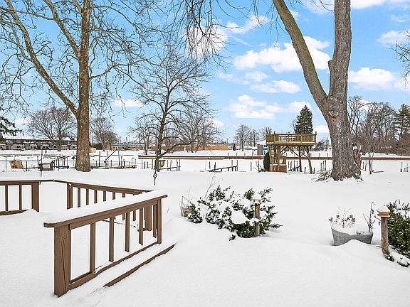 The spacious living room is filled with natural light and features a gas fireplace and a large bay window seat with built-in blinds for added privacy. A doorwall leads to a freshly painted deck overlooking the park-like, fully fenced backyard. Along the water’s edge, enjoy a steel seawall and three boat docks with capacity for up to six large boats—ideal for boating and entertaining.