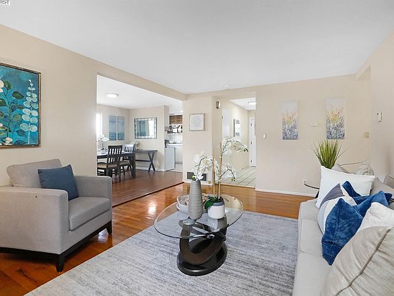 Located in the highly desirable Southgate neighborhood, 25655 Calaroga Ave is ready to be your new home. As you arrive, you will appreciate the welcoming curb appeal. The gated front yard provides added security, the lush green grass is surrounded by freshly laid mulch, bright flowers and greenery. The interior offers an abundance of natural light, fresh paint, updated ceiling lights and a new front door. The layout of the living room, dining area and bonus room allows for the perfect open space to entertain. You will love the original hardwood flooring that flows through majority of the home, plus there is new flooring in the kitchen and bonus room. All bedrooms are generously sized and have newer dual pane windows. The primary suite has a big walk-in closet and en suite bathroom. Your peaceful backyard provides a shaded patio space to relax, a large storage shed and is surrounded by greenery. Central location as you are close to the San Mateo Bridge, 880/580 freeways, Chabot College, and other local shops and restaurants.