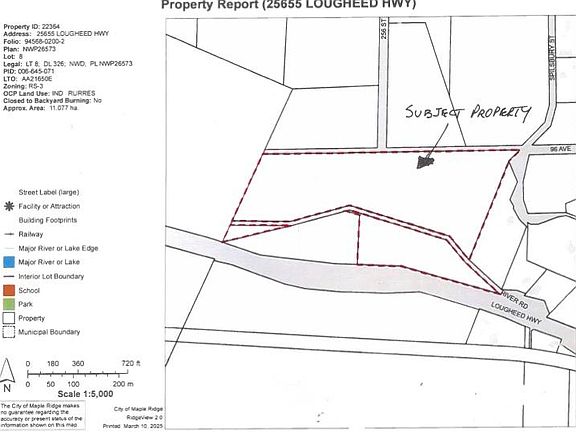 This 28.23-acre vacant lot is located along Lougheed Hwy, across from industrial lands currently undergoing rezoning. Zoned RS-3, the property features both level and sloped areas, with a history as a dairy farm. The city’s long-term planning indicates potential for a business park. The property has no services except for a drilled well (capped). This is an ideal long-term investment, with the possibility to subdivide into four 4.9-acre parcels on the rear portion or build a family home while holding for future development. Enjoy the peaceful country life on this expansive 28-acre property.