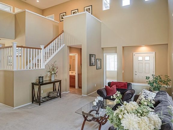 Absolutely, Immaculate "Crescent Moon" with a Pool and Spa on a Triple Cul-de-Sac Location! This home offers a double vaulted living room open to a formal dining area, a downstairs bedroom, a 3/4 bath in the hallway with a walk-in shower, a laundry room with cabinetry, a kitchen with granite counters, a breakfast bar, an eat-in area and a pantry open, all open to a family room with a fireplace. Upstairs are 3 more bedrooms, the master at the rear of the home has its own bath with dual sinks and a separate tub and shower, a walk-in closet, and a retreat (used as an office), the other two bedrooms share the 3rd bath. Upgrades throughout include newer, neutral paint, low pile carpeting, custom tumbled stone tile flooring in all baths, laundry, and kitchen, 2 inch white blinds and custom window treatments, newer upgraded stainless steel appliances including a refrigerator, mirrored wardrobes, custom fixtures and 6 ceiling fans, linen closets on the first and second levels, under the stairway storage, and MORE. The rear yard has a pool and spa, lots of hard scape, including slump stone walls, professional landscape as well as a grassy area. This home is a must see for the discerning buyer!