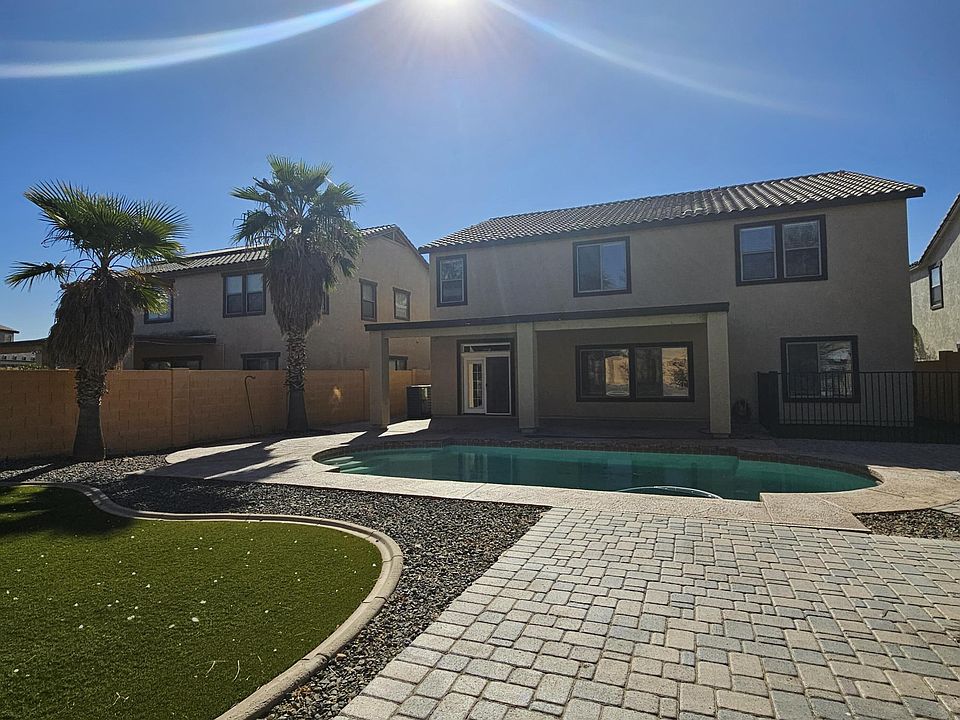 Introducing a stunning 5 bed 3 bath gem in Buckeye! With 3617 sq. ft. of pure elegance, a private pool, lush backyard with artificial turf, a main floor bedroom and full bathroom, HUGE BONUS room upstairs, and upgraded appliances. Your dream home awaits!