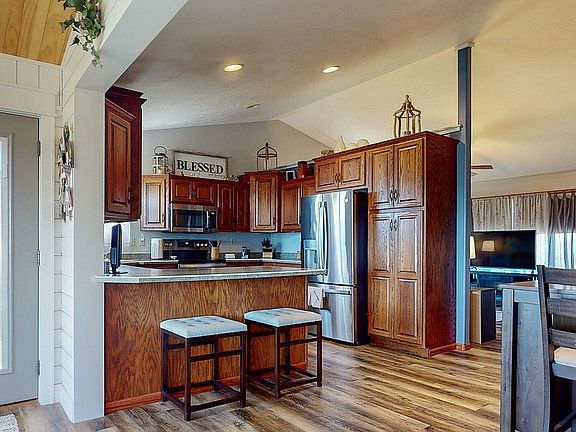 This well maintained acreage contains abundant trees and provides a quiet, private setting just minutes from the amenities of Sioux Falls. The property includes a home with nearly 2700 SQFT of finished living area and a spacious shop/outbuilding (36' x 56'). The main level has luxury vinyl plank floors, vaulted ceiling, and a 3-seasons room with great views. Also on the main level are 2 bedrooms and 2 full baths. The kitchen features luxury vinyl plank floors, laminate counters and stainless steel appliances. Appliances stay with the home. The primary bedroom is located on the main level and features carpet floors, vaulted ceiling and walk-in closet. The primary bedroom's attached bath includes vinyl floors, solid surface counters and one piece shower. The finished walkout lower level features 2 bedrooms, full bath, office/study and laundry room. Outside you'll find a deck and patio area with great views to the East and North.