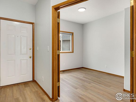 Newly updated end-unit townhome located in the sought-after Westwood neighborhood in southwest Loveland! This brick home sits on a quiet cul-de-sac with lush landscaping, mature trees, and a back patio where you can relax and enjoy the park-like setting and mountain views. The spacious open floor plan is sure to impress with fresh interior paint, upgraded luxury vinyl plank flooring, and new LED lights with dimmers perfect for setting the mood. The upgraded kitchen features new appliances, a wraparound counter with bar seating, handsome cabinetry, and a modern subway tile backsplash. The primary bedroom has private access to the shared bathroom with a large walk-in shower, an extra closet, and a stackable washer and dryer. A 2nd bedroom with French doors can double as a home office. The unfinished basement is roughed in for a bathroom, providing the perfect opportunity to customize and expand your living spaces. The finished attached garage provides extra space for storage. Ideal location with easy access to local dining and entertainment, and just minutes away from Big Thompson River walkway and Marianna Butte golf course, with a new nature area coming soon as well! Don't miss your chance to make this incredible property your own!