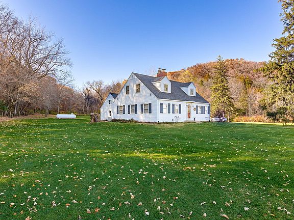 Spacious Cape Cod on Burlington Rd. sitting on 19 acres of beautiful mature trees. Home has a spacious master bedroom . 15 x 30 living room with fireplace.  Large kitchen and dining area with fireplace. Mostly finished basement.  Attached two garage. Roff and furnace are approx 9 years old.  This home has been well maintained.