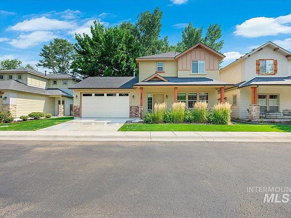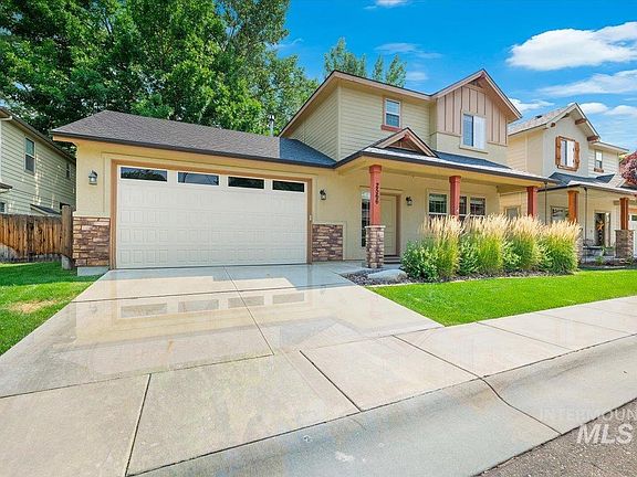 A rare North End find! This newer Craftsman-style home is situated in the private residential enclave of Sunset Commons, just minutes from downtown Boise, 1-84, Hyde Park, and the Boise foothills. This charming home has no backyard neighbors - only serene sounds of the seasonal creek. The low maintenance yard is complete with wrought iron-view fencing and a covered patio. The spacious great room includes a cozy fireplace, windows galore and tall ceilings to accentuate this beautiful floor plan. The great room flows seamlessly into the gourmet kitchen - great for entertaining! The kitchen features hardwood floors, rich granite counter tops, tumbled stone back splash, custom alder cabinetry, walk in pantry, and stainless-steel appliances. The primary suite bathroom has dual vanities, a soaking tub, and a separate shower. Guest bedrooms share a spacious bath suite with dual sinks. The custom-built shelving in the garage adds additional storage. A must see!