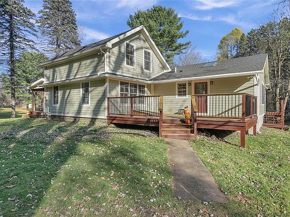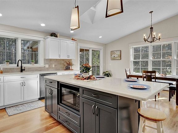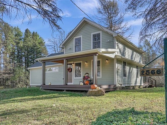Welcome to your own private nature sanctuary with 4.26 acres, mature trees, pond and wildlife. This home has been made completely new from top to bottom. Spectacular kitchen with Velux skylights, Waypoint cabinets, Quart's countertops. All New Appliances. Large pantry for storage. Spacious dining area with beautiful view of the yard and sliding glass door leading to deck and view of the pond. Custom milled white oak plank flooring throughout. Lovely living room with large windows. First floor bedroom with on-suite. Bath features double vanity, soaking tub, wheelchair accessible shower. Lots of storage. First floor laundry and additional half bath. 2nd floor features 2 bedrooms with custom built in cabinets, beautiful bathroom. Additional room for more storage. New electric, plumbing, baseboard hot water heat with high efficiency wall mount propane boiler with integrated domestic hot water. New roof, new siding, Windows, Septic and Well with 20gm water flow. All exterior and interior walls new or reframed. Spray foam insulation throughout. Large 2nd deck and Porch Sq Ft different than tax records due to New Addition added on by seller.