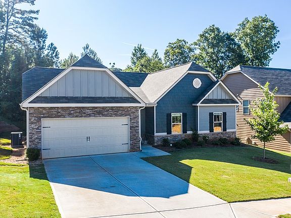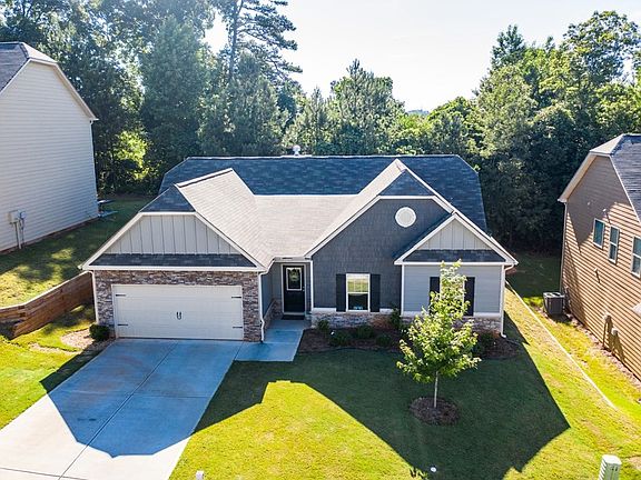 Better than new Ranch home with upgrades. Soaring ceilings and open floor plan greet you as soon as you open the door. The trendy kitchen with island and stainless steel appliances overlook the spacious living room with a stacked stone fireplace. The master bedroom feels huge with high ceilings and natural light. The double vanity and walk in closet are just a few of the great features. Low maintenance home in a well sought after swim/golf/tennis community! Move in ready without a thing you need to do. Convenient to I-20, Atlanta airport, and great restaurants and shopping.
