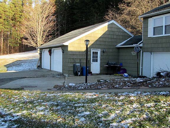 Elevated up from the main drag sits this 3-4 bedroom home with attached two car garage. There is a large size living room with a stone fireplace with a propane insert and built in cabinets and shelves on both sides. Large picture window has amazing view of the country side. Off the living room is the dining area adjoining the kitchen. Large kitchen with Amish made cabinetry and granite counter tops. Close by is the main floor laundry area and a half bath. Four good sized bedrooms. One of the bedrooms is being used as a den as it has glass sliding doors leading to a covered porch area. The basement has one end finished off as a family room. There is an overhead door to the basement great storage area for lawn equipment. Beautiful home with gorgeous views is move in ready!!!!