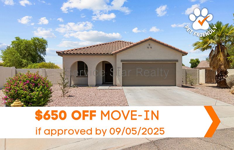 Now offering $650 OFF Move-In if approved by 09/05/2025! Welcome to your new home in South Phoenix! This beautifully maintained 3-bedroom, 2-bathroom home features fresh interior paint and low-maintenance desert landscaping. The covered front patio is the perfect spot to enjoy your morning coffee or unwind in the evenings. Inside, tall ceilings and oversized doors create a bright and spacious feel throughout. The kitchen offers a functional layout with a breakfast bar, ample cabinet space, and mostly sleek black appliances - including a recently upgraded stainless steel refrigerator. A dedicated dining area flows seamlessly into the open living room, which is filled with natural light and includes a ceiling fan for added comfort, plus direct access to the backyard. The backyard extends your living space outdoors with a covered patio, ideal for relaxing in the shade or entertaining guests. The primary suite includes soft carpet flooring, large windows, and a private ensuite bathroom with dual sinks, a walk-in shower, a separate water closet, and a generous walk-in closet. Two additional carpeted bedrooms share a full bathroom, offering flexibility for family, guests, or a home office. This home is conveniently located just minutes from South Mountain Preserve, where you'll find endless hiking and outdoor recreation. Shopping, dining, and everyday conveniences are close by, with quick access to I-10 and Loop 202 for an easy commute anywhere in the Valley. Don't miss out on this wonderful South Phoenix home - schedule a tour today! STATUS: AVAILABLE AVAILABLE TO SHOW: NOW AVAILABLE TO MOVE IN: NOW ANIMALS: Dogs - Yes | Cats - Yes UTILITIES: Tenant to pay for all utilities LANDSCAPING: Tenant to maintain landscaping POOL MAINTENANCE INCLUDED: The Landlord maintains the pool AREA INFORMATION: 27th Ave & Southern Ave FLOORING: Tile & Carpet GARAGE/PARKING: 2-Car Garage ELECTRICAL VEHICLES: Resident to verify if home electrical is equipped to charge your vehicle. KITCHEN/LAUNDRY APPLIANCES INCLUDED: Refrigerator, Stove/Oven, Dishwasher, Microwave, Washer & Dryer PROPERTY TYPE: single-family home YEAR BUILT: 2004 YARD: Desert Landscaping Additional Amenities: There is additional information on the property below as well as a Q&A section to help you. PLEASE READ THIS: We are a Pet-Friendly Company! Most of our properties allow almost any pet, from cats to mice to snakes and birds. We understand that a pet plays a significant part in many peoples lives, so we strive to allow nearly all animals in our rentals. SMOKING/MARIJUANA: No smoking is allowed on the premises No marijuana is permitted in any form SHOWING INSTRUCTIONS: Register for a Self-Guided Tour by clicking the Schedule a Showing button. If there is no viewing time available, the property is not ready to show. You are welcome to get on a waitlist and receive notification as soon as showtimes are available. You will be required to provide an ID. It is to verify your identity, make sure you are an adult, and protect the property by keeping track of visitors. Receive text to confirm your appointment. Upon arriving at the address, you will be guided to text the lockbox number and receive a code. You will be guided through this process via text messages. The code only works for an hour window. No one will meet you at the property. Any problems? APPLICATION INSTRUCTIONS: Ensure that you have all the required documents handy and ready to attach to the application Complete the Online Application Form. Complete the Pet Screening Profile at https servicestarrealty.Pay the Application Fee with a credit or debit card. We accept applications until we receive earnest money from the first approved applicant. More Information: Application, Lease Terms, and Fees MOVE-IN FEE: $250 Lease Administration Fee HOLD FEE/EARNEST MONEY: Equals one month rent plus $250 lease administration fee, and it is due within 24 hours of application accepted. Application Fee: Non-Refundable, $75/adult APPLICATION TURNAROUND TIME: 3 business days LEASE START DATE: Must start within 3 weeks of Approval or within 3 weeks of when the property is available, whichever is first. LEASE LENGTH: One Year LEASE TO PURCHASE OPTION: Not Available RENEWAL FEE: $250 - Applicable at end of lease term and if you decide to renew SPECIAL LEASE PROVISIONS: None Our Resident Benefits Package includes: 1.Renters Insurance with $100,000 liability and $10,000 content coverage included at no cost to you on Service Stars master policy, coverage valued at $14 per month. 2.Our Credits to Close Program converts your monthly Resident Benefit Package fee into a credit (up to $2,124) towards closing costs when you purchase any home through us, not just the one you're renting. You're essentially building equity while renting, making your transition from renter to homeowner easier with each year you stay, regardless of which home you choose to buy. 3.You can build credit history with on-time rent payments. Our Rent Reporting Program is optional. We only report positive data to the Bureaus to help boost your credit score. 4.We offer credit improvement planning with professionally trained experienced analysts at no cost to you. 5.A 24/7 emergency maintenance concierge will help you troubleshoot at any hour and dispatch help as needed. 6.Online Portal maintenance and fees. HOA Instructions HOA AMENITIES AND SERVICES: HOA FEE: Paid for by the owner PROPERTY MANAGER: Brittany Brewer Our office hours are Monday through Friday, 8 am to 4 pm. You can still schedule a showing after hours by clicking the Schedule a Showing button. Q&A 1.Can I get approved if I filed for bankruptcy in the past few years? We can accept your application only with a bankruptcy that was discharged. We do not accept applicants with open bankruptcy. 2.Is it the Net or the Gross income that you consider for your income criteria? We consider your Gross Income, which needs to be three (3) times the monthly rent amount. 3.Can I apply to rent the