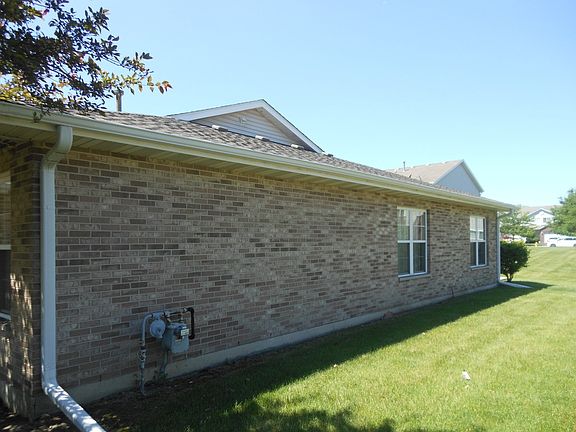Neatly kept 2 bedroom, 2 full baths brick ranch duplex in desired Hunters Crossing. Master has a huge walk-in closet and full bath. Kitchen has a look-thru window to living room area, table space and all appliances. 2 car attached garage and complete laundry room. Roof replaced in 2015. Low association fees. Taxes reflect a senior exemption/freeze.
