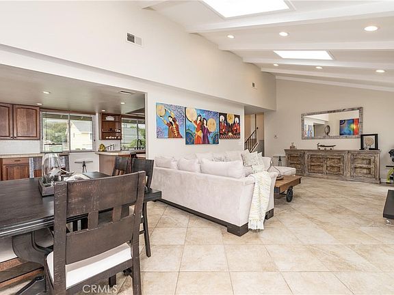 Beautiful view home in the heart of Mission Viejo with 3 bedrooms and 3 bathrooms. The home features an updated kitchen, custom cabinetry, nook, spacious living room with fireplace, beamed ceiling, 2 skylights and dining space. Downstairs you will find the recreation room, currently used for an in-home daycare, but could also be a 4th bedroom with a 3/4 bathroom. Upstairs, the primary room has an open view, an expansive deck with stairway to patios, a remodeled bathroom and an enlarged walk-in closet. Two large secondary rooms enjoy balconies and share a remodeled bathroom. There are three levels of outdoor space - the main level off the living room which is perfect for outdoor entertaining with a firepit, beautiful hardscape and grassy park-like yard, the primary retreat's huge deck on the third level and the lower level with patio and another large, fenced grass area. The setting is peaceful and park-like. Enjoy sunrise and sunset views! Upgrades include a plumbing re-pipe, newer electrical panel, whole house fan, added recessed lighting, newer vinyl gates, and newer flooring downstairs. Awesome location to Mission Viejo amenities, library, shopping, restaurants, parks, trails and award winning schools. MV Lake membership is the only HOA which includes two beach clubs, boat rentals, concerts and movies under the stars. Explore all that Mission Viejo has to offer and settle into this charming tri-level home exuding charisma and character.