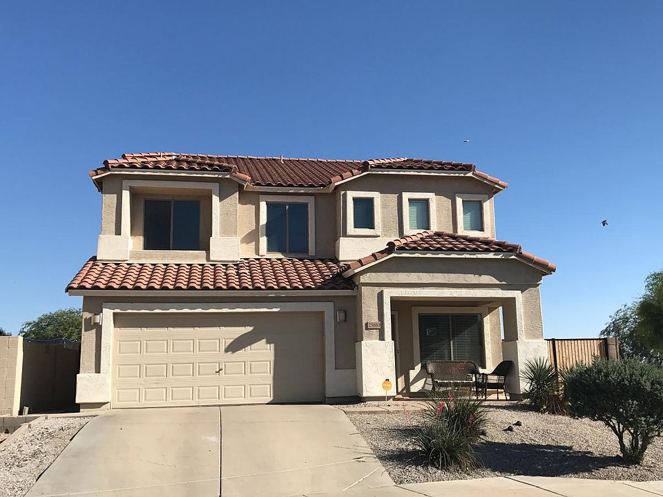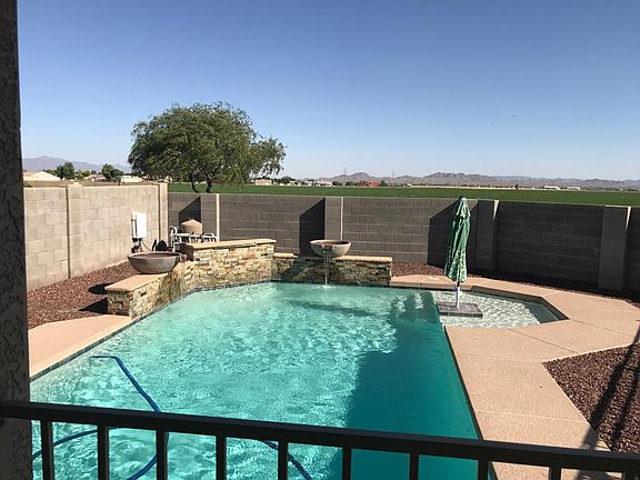 Beautiful Family Pool. Super premium cul-de-sac lot w/ no neighbor behind or to the West. Great views of the mountains and the sunset. Granite counters and backsplash in kitchen that also features cherry finish oak cabinets with crown molding, an island and walk-in pantry. 16' tile, upgraded carpet padding, double sinks in both upstairs bathrooms. Separate tub & shower in master bath, HUGE walk-in closet. 9' ceilings throughout. Tandem 3 car garage. And there's also a great play area for the kids upstairs. Available 6/1/2017