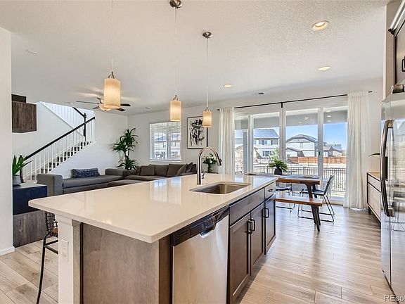 Welcome to Traditions in Aurora. This Richmond home is one of the most popular floor plans for the builder with high ceilings on the main floor with an open kitchen overlooking the spacious family room. This home is set on a corner lot with large yard and expansive covered back patio. Numerous builder upgrades including engineered laminate flooring and quartz countertops. South facing home with a 3 car garage. Showings start Saturday morning and end Sunday at 4:30 pm.