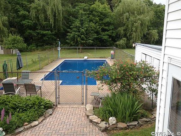Home Sweet Home! Quiet and private country living but minutes to the City of Oswego. This lovely updated 4 bed. colonial w/wrap around proch sits on a beautiful 3.5 acres with wild berries, fruit trees, and wildlife in your own paradise. Enjoy the deck, patio, and in-ground pool with pool house with changing/bathroom during those hot summer days! First floor laundry/bathrooms. Tons of updates have been made been done, move right in and appreciate this maintenance free home. Plenty of room to add barn, garages, etc. Lake Ontario minutes away.