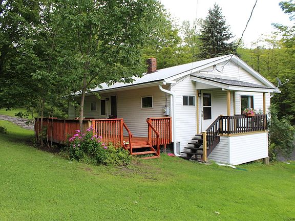 Beautiful location on a country road 2.3 miles from exit 5 interstate 89. The house is situated on a gentle slope with a walkout basement overlooking the pond, plum, pear and apple trees. The lawn surrounding the home is well maintained with perennial plantings. Behind the house you will find 6 + acres of gently sloping wooded area with an old small horse barn for your exploration. The 3 bedroom (one bedroom does not have a closet) home is well maintained in lovely move-in condition. There are new windows and a new drilled well. The kitchen wood stove, oil furnace and Sam Daniels wood furnace provide plenty of alternatives for heating. There is a poured concrete foundation and a metal roof with new gutters. Brookfield is known for the town floating bridge.