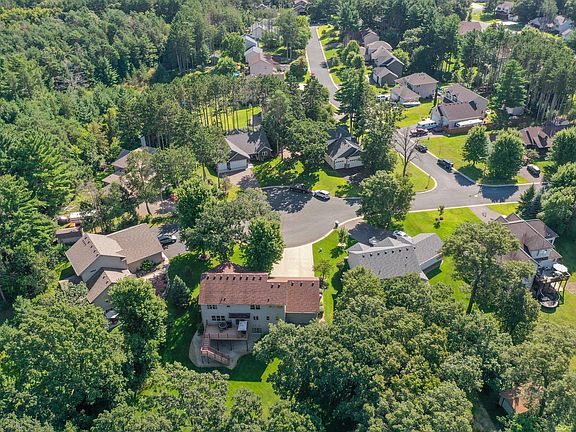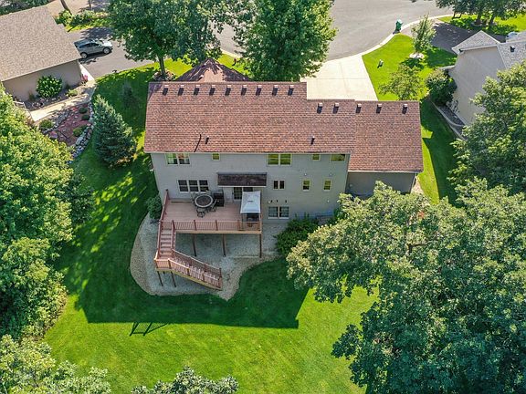 Nestled on 1.64 acres of a beautifully wooded lot, this home provides the utmost privacy in a cul-de-sac setting. The numerous features of this crafted custom home features a main floor office and laundry for added convenience. The upscale kitchen gas appliances and hardwood floors, granite countertops, hickory cabinets elevate the interior. Lower level w/ wet bar, large family room, bedroom and walkout to 1.64 acres of privacy. Garage has in-floor heat to ensure comfort, while outdoor amenities such as a spacious maintenance free deck, and firepit area offer opportunities for relaxation and entertainment. Enjoy move-in readiness. All within the last 5 years, roof, A/C, furnace, water heater, black stainless steel appliances. Surrounded by abundant wildlife and boasting privacy, this property also benefits from proximity to excellent schools and offers convenient freeway access.