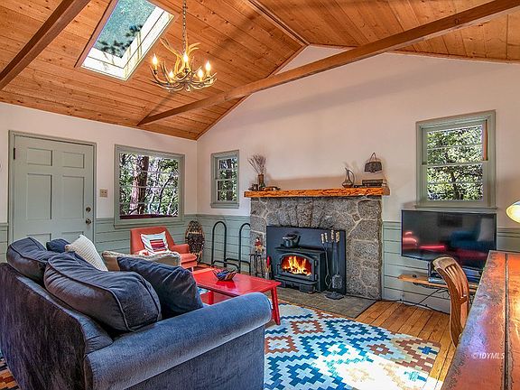 HIDDEN COTTAGES. Located in a beautiful, serene setting on a seasonal creek in Fern Valley, this well maintained and upgraded 1940's cabin with detached guest cottage, has classic pine paneling, hardwood floors and rock fireplace in an open, cathedral ceiling style design. Charming inside and out, with spacious living room with skylights, galley kitchen with farmhouse sink and soapstone counters, dining room with built-in seating, bedroom with vaulted ceiling and linen cabinetry, remodeled bath with subway tile shower, laundry, propane forced air heating and private deck overlooking the natural beauty of an undisturbed forest setting with seasonal creek, on .78 acre. A detached guest studio with open beam ceiling and gable end picture windows, has a roomy bedroom with wood stove and mini split heater/A/C and spacious full bath. Most furnishings in both cabins are included. Two adjoining vacant parcels add to the magical setting.