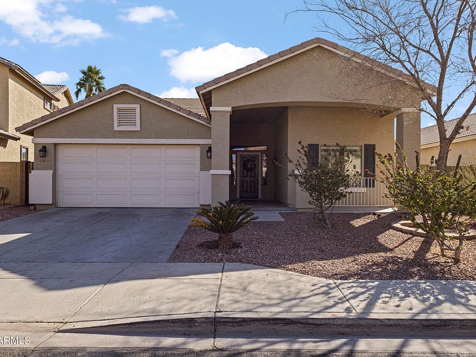 Fall in love with this beautifully maintained 4-bedroom, 2-bath single-story home with a split floor plan and an OWNED SOLAR system! Featuring vaulted ceilings, a new front door, and a spacious kitchen with a large island, updated cabinets, and new hardware. The great room offers built-in surround sound, perfect for entertaining. The primary suite includes a walk-in closet, dual sinks, and a soaking tub. Energy-efficient upgrades include an Ecobee Smart thermostat, attic insulation, and sealed ductwork. Enjoy the oversized covered patio and low-maintenance backyard. Conveniently located near I-10, shopping, dining, and Hidden Lake. Move-in ready and waiting for you!