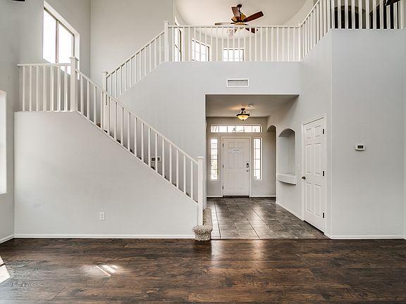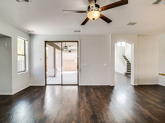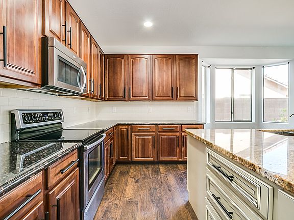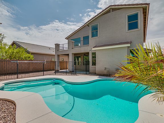 This spacious Westpark home is accented by desert landscaping in the front yard and it has a fenced pool in the back! Upon entry, the living room and formal dining area impress with soaring ceilings and an abundance of natural light. The kitchen is equipped with stainless steel appliances, granite countertops, an island with breakfast bar, and a nook with bay windows, and it opens to the family room with sliding glass doors leading to the covered patio. The Master suite is on the upper level, boasting dual vanities, a separate garden tub and shower, a walk-in closet, and a private balcony. Perks include new carpet, a loft, and two spare rooms that can be used as offices or dens! The home is a short distance from the dining and shopping options at Sundance Towne Center, Walmart Supercenter, Buckeye Public Library, Sundance Golf Club, the trails and views at Skyline Park, and I-10 access. All Opendoor homes come with a 30-day satisfaction guarantee and one-year premium warranty. Terms and conditions apply. Open House: Mon-Sun, 6am-9pm