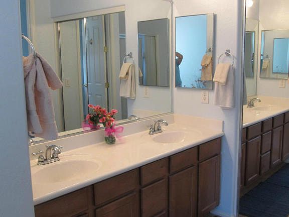 Beautiful, highly upgraded home that shows pride of ownership both inside and out.Lovely 20 inch tile on the diagonal in all the wet areas. Newer faux wood floors in the great room, dining and 3rd. bedroom.Kitchen has granite and upgraded cabs. Nice pantry,newer garbage disposal and refrigerator included..Pot shelving in kitchen and throughout the home.Master has exit to patio. Master has bathtub and sep. shower and double sinks and large master closet. Formal dining room with faux wood floor is sure to please.Covered patio that overlooks the Beautiful pool and garden area.The pool has an awesome water feature and is a saltwater pool.Garden is producing great tasting Organic produce, plus wonderful assortment of flowers.CDF is paid.Move in ready and you will love this spotless home!
