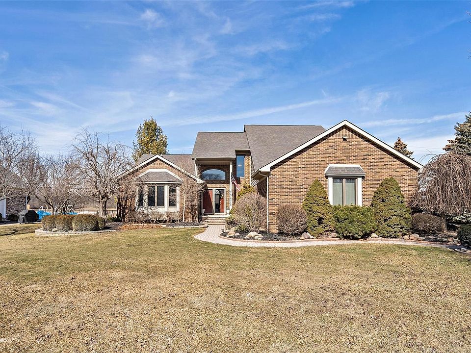 Inviting Contemporary Split Level With Up North Feeling .. Fenced 1/2 Acre Lot .. 2 Decks & Brick Paver Patio .. Retractable Awning .. 3 car attached garage and a 2nd detached Garage .. 2 Story Great Room with floor-to-ceiling Brick Fireplace .. 1st Floor Master with glass Doorwall to Deck and fully remodeled Bath .. large, updated Kitchen with Island and adjoining dining area .. All Appliances .. Newer Granite Countertops and Ceramic Backsplash .. glass Doorwall to Deck .. 1st Floor Library/Den with French Doors .. Large Upper Level Bedrooms both with Walk-in Closets .. Remodeled Upper Level Full bath .. Lower Level with Rec room and Workshop .. New Furnace and Central Air with 'Nest' thermostat .. Andersen Windows and Doorwalls .. Gas Powered Whole House Generator .. Flexible Occupancy