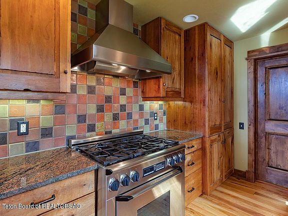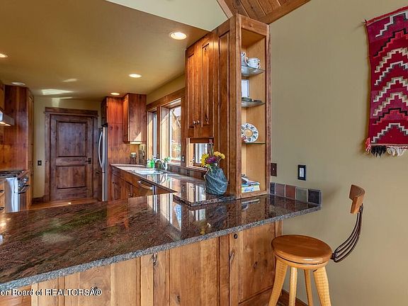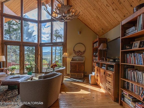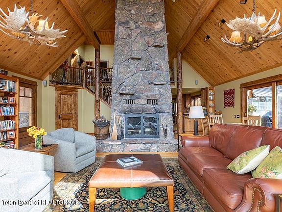 ***Under contract but backup offers welcomed. Contract has a kick-out clause***. Beautiful home bordering National Forest in Moran, WY, a 40 minute drive from town. The house features a master bedroom suite on the ground floor, two guest bedrooms, 2.5 bathrooms, a loft, an oversize garage with workshop, storage, and greenhouse, and a screened gazebo with its own fireplace. Finishes in the house are exceptional, including two story stone fireplace, hickory floors, granite countertops, high end appliances, and custom wood cabinetry. Radiant floor heat will keep you toasty while enjoying the mountain views to the south from the wall of windows in the living room. The 1.08 acre lot includes raised garden beds and established raspberry bushes.