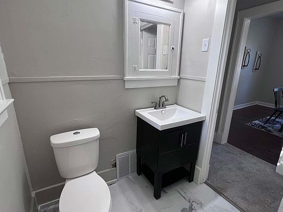 Perfectly updated bungalow! Freshly painted walls and trim, original wide plank wood floors, new carpet in the bedrooms, new LVT in the bathroom and kitchen, and brand new doors. The full sized basement has ample storage space and washer and dryer hook-ups. A HUGE back yard, which is partially fenced, is ideal for a shady place to relax outdoors. Both bedrooms offer large closets, and the larger bedroom has a second bonus closet! The bathroom boasts a large clawfoot tub with a shower head and suspended curtain rod. Close access to HWY 75. This home is perfect for someone looking for comfort and convenience. Could also be an incredible investment property!