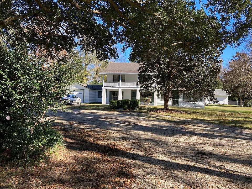 EQUANIMITAS FARM - Approx. 44.78 acres of rolling hills & improved Bahia grass pastures bordering Hobolchitto Creek and .5 mile frontage on Burnt Bridge Rd. Just 2 miles from the city limits, stands a 3 Br. 3 B. Vintage Colonial Farm House, large patio & attached garage: separate open Guest House with deck, full bath, & kitchenette; large fenced back yards; fishing pond; custom kennels; center loft hay barn w/ 5 horse stalls, feed room, & paved cattle run; tractor/equipment barn; hog parlor; chicken coop; 2 windowed outbuildings; and Hunting/Fishing recreational land extending along the creek.
