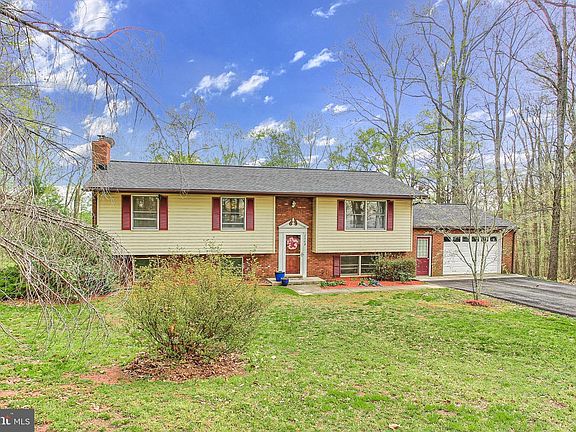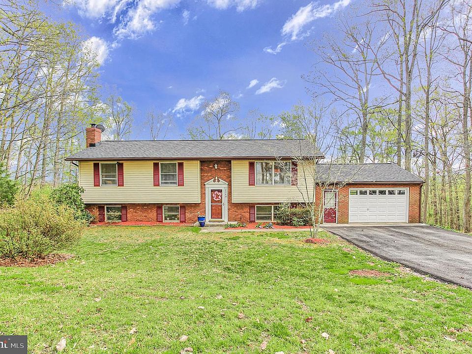 Nestled on 2.23 acres and surrounded by mature trees, this 4 bedroom, 3 full bath split foyer offers peace and tranquility along with a breath-taking view! The functional living space and charm showcased throughout, leaves you feeling as if you've entered your own, private oasis each time you step through the front door. MAIN LEVEL features: 3 bedrooms; 2 full baths; gleaming Brazilian Cherry hardwood flooring; Gourmet Kitchen remodeled in 2013 with new cabinets, soft-close drawers, glass subway-tile backsplash, granite counter-tops, large center island with glass pendant lighting, chandelier, stainless steel Bosch appliances (including 2 ovens - 1 Jenn-Air and 1 wall oven) eat-in area with french doors leading to a spacious deck for entertaining and a bright/airy living room. LOWER LEVEL features include; 1 bedroom; 1 full bath; laundry/utility room; spacious 20 x 23 ft. family room with wood stove; french doors lead to a private backyard with cozy firepit and summer garden that attracts a large variety of birds and butterflies. Brick & vinyl exterior; BRAND NEW Certainteed roof, installed April 2021;attached 2-car garage; newly paved driveway in 2020 and storage shed. This beautiful home boasts pride of ownership from top to bottom! All of this, on over 2 acres of privacy - won't last long!!!