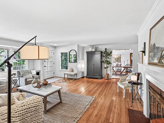 Original hardwood floorsWood-burning fireplaceUnique design detailsLoads of curb appealThree walls of windowsSpacious dining roomWindow seat