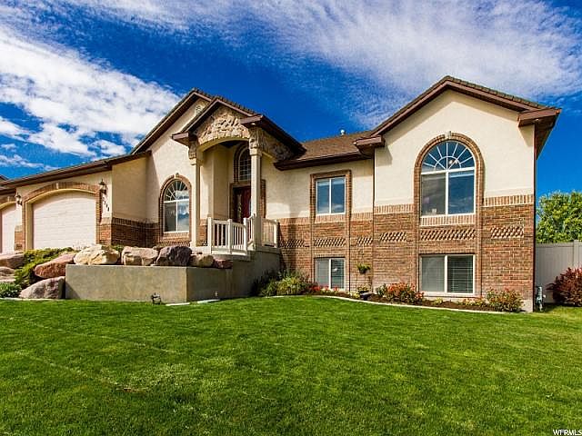 Gorgeous mountain and valley views from this home on the hilltop. Custom cabinets complemented by beautiful granite countertops. Every chef's dream kitchen with gas cooktop and plenty of prep space. Open floor plan great room concept, vaulted ceilings and gas fireplace making this area very comfortable for relaxing or entertaining. Large master suite with his & hers walk-in closets, separate bath, and walk-in shower. Main level laundry and big bedrooms throughout the home. Enormous family/rec room in basement great for family fun and movie night plumbed for surround sound. Veggie garden with water in a huge fully landscaped backyard. Very desirable location in a quiet, friendly neighborhood but conveniently close to all life's activities.
