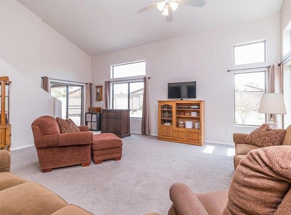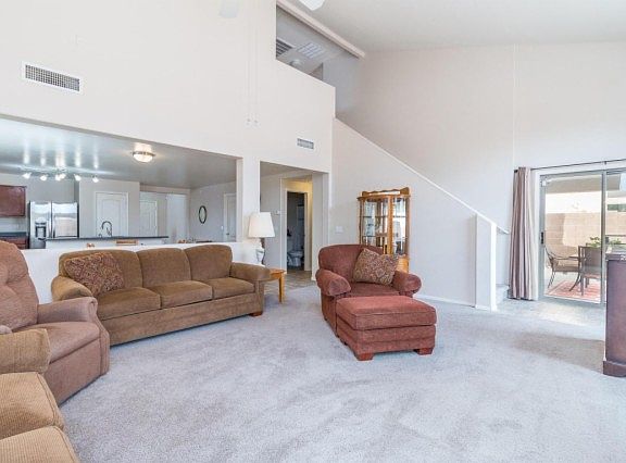 Great family home featuring 4 bedrooms & 3 full baths in 2417 Square Feet. Floor plan features a huge great room with vaulted ceilings, large open eat-in kitchen, and den (currently used as formal dining). The kitchen has an abundance of maple cabinetry, black appliances, pantry, and island with breakfast bar. Sliding doors lead out from the great room to the covered patio & huge backyard. One bedroom & full bath downstairs, perfect for guests. The master retreat & 2 secondary bedrooms with Jack & Jill bath are upstairs. The master bath has an extended vanity, separate tub & shower and walk-in closet with shelving and a window for natural light. Other features include newer water heater, security system, & 3 car tandem garage. Washer & Dryer included, too! See this home today!