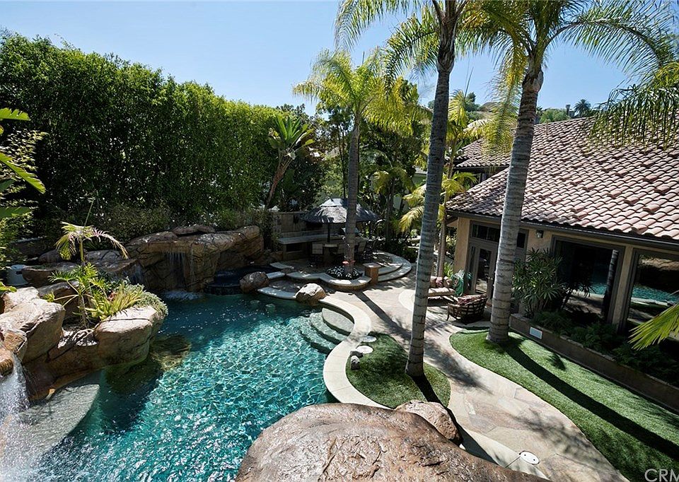 This impressively upgraded home, located on a peaceful cul-de-sac, offers an endless array of advantages. Excellent floor plan with 4,994 sf of living space, 5 bedrooms, 5 bathrooms, grand staircase, upgraded carpet and travertine floors. The first floor presents a bedroom suite with patio/pool access and an executive office. High vaulted ceilings, formal living/dining rooms and cozy fireplace flow into a great room with built-in media center. Other lovely features include a game room, pub bar opening to a gourmet kitchen, stone countertops, dual dishwashers, custom cabinetry, and dual Subzero refrigerator and freezer. The second floor reveals a spacious main bedroom suite, two large bedrooms, a bonus room with fireplace, and laundry/craft room with dual washers and dryers. Four-car garage with 2 hydraulic lifts can park 6 vehicles. Low HOA fees with excellent facilities, horse trails, and award-winning schools. Quick access to I-5 and I-405 freeways, minutes to parks, stores, restaurants, UC Irvine, and beaches. Surrounded by an expansive home site that measures 1/2 acre, this residence provides generous spaces including circular driveway, patio with fireplace, sports court, outdoor kitchen with television, spacious pool & spa and a waterslide & waterfalls.
