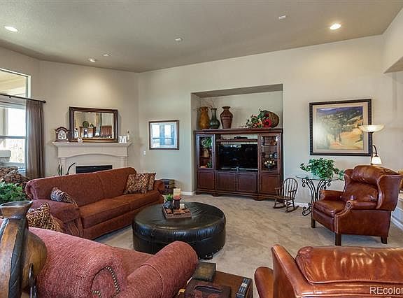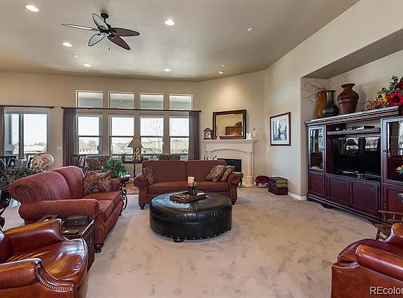 Wonderful Toll Bros rustic contemporary ranch. Several of this model in Castle Pines Village. Stucco and stone exterior facing south. Back deck and great room/kitchen have some of the best mountain views in the development and the 10 and 12 foot ceilings provide a spacious open feeling. Master suite has his and hers walk in closets. New hardwood and carpet in GR and entry. Extra large bedroom in basement with 3/4 bath could be a second master or mother-in-law. Basement has a nice wet bar with dishwasher and frig. High end pool table in basement goes with the house if a buyer would like it. Tandem 3 car finished garage.