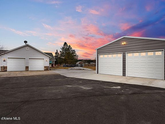 Well maintained 2118 square foot home with 560 sq ft in law quarters, shop, and additional oversized garage all on 4.8 acres. The main home features 3 bedrooms and 2 bathrooms plus an office, a recently upgraded kitchen and primary suite, wood burning stove, and Brazilian hardwood floors. The 40 x 40 heated shop includes an additional dwelling unit with 1 bedroom and 1 bathroom. as well as entertaining areas. Enjoy relaxing on the covered porch or in the hot tub. Large yard with garden, greenhouse and garden shed. Sale includes refrigerator, washer, dryer, hot tub, water softener, garden shed and all TVs. Conveniently located close to Silverwood and State Highway 95 for commute.