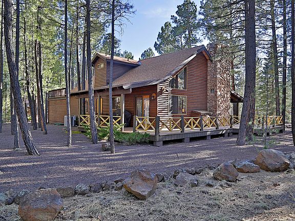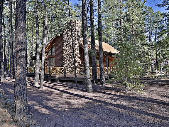 Tucked in the back of the Country Club and close to National Forest this cabin is waiting for its new family. Two bedrooms and two baths are downstairs with a large loft, full bath and upper story deck for the kids. Massive rock fireplace, hardwood floors, tongue & groove ceilings with beam accents and a wrap around deck are just the right features for enjoying the mountain atmosphere. Located on a corner cul-de-sac street with a circular driveway, perennial flower beds and a mixture of mature trees provide for a great outdoor living space that is secluded and serene. Only 26 miles to Sunrise Park Resort and close to golf, hiking trails and all the outdoor adventures the White Mountains has to offer. Furnishings available outside of escrow.