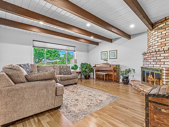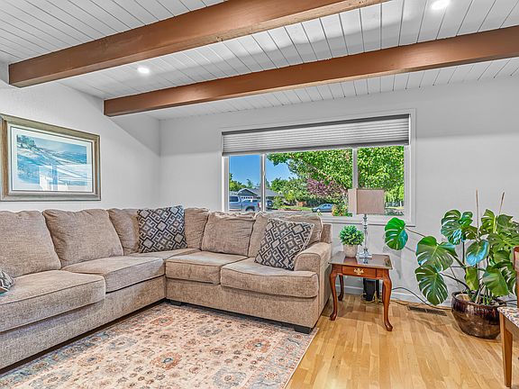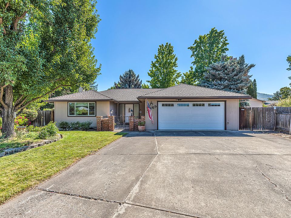 This charming 3-bedroom, 2-bath home sits nestled at the end of a cul-de-sac in desirable East Medford. Step inside and be greeted by a fresh, inviting atmosphere thanks to the recently updated interior paint, beautiful hardwood flooring, and modern light fixtures. In the living room you'll love the cozy fireplace and wood beams that add character and charm.The kitchen features tons of storage along with a pantry for all your culinary needs. The spacious primary boasts a walk-in closet with an en suite bathroom. But the true gem of this property lies outdoors. The expansive, fully fenced backyard boasts established plants and raised garden beds, offering the perfect space for nurturing your green thumb or simply relaxing amidst the beauty of nature. Host summer barbecues or create your own private escape - the possibilities are endless! All this plus a two car garage as well as parking space for small toys or a boat!