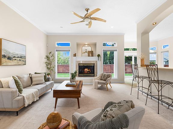 This Eagle gem was custom built with an open-concept design and thoughtful upgrades throughout. The split-bedroom layout features three bedrooms plus office, offering both privacy and flow, with clerestory windows and extra-tall ceilings that flood the home with natural light. The main living spaces feel airy and inviting, anchored by a cozy gas fireplace and offering a large main living area. The spacious kitchen with extra large island offers room to cook and entertain with an abundance of cabinets and countertops plus pantry. Sliding doors from guest bedroom and primary suite to the yard are an added bonus. A side-entry garage enhances curb appeal, while the nicely sized yard offers room to garden, play, or simply relax. Every detail has been designed for comfort and convenience, making this a true turnkey property. With easy access to both Boise and Eagle, you’ll enjoy the best of suburban tranquility and city amenities. Updates include 30-year roof (2014), high-efficiency Lennox furnace with upgraded HVAC system and water heater (2018), Bosch dishwasher (2021), new sliding door with interior blinds, upgraded south side windows (2021) and a top-of-the-line Kinetico water softener. A rare single-level home that combines style, function, and location—ready to move right in!