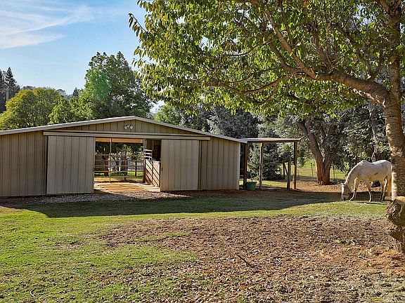 The farmhouse with full wrap around porch, custom hardwood, 3 fireplaces, 4 bed, 4 bath. 4 car garage with stairs to storage above. Year round pond and stream. Two stall barn, 4 pastures, turnouts with shelters. Hunter riding arena. Lawns and pasture on Auto sprinklers with NID irrigation.