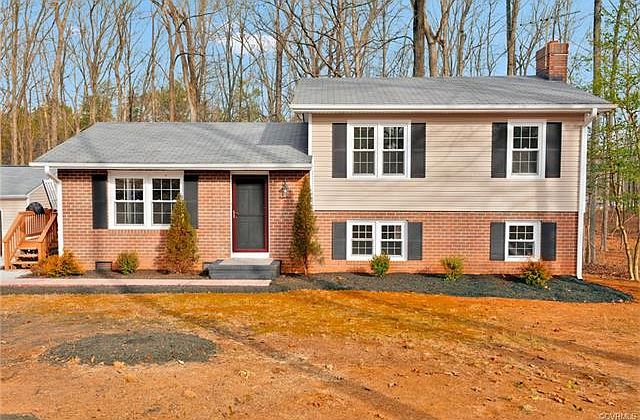 RENOVATED Tri-level home situated on a 1.99 acre corner lot in central Powhatan. 3 bedrooms, 3 full bathrooms, 1741 square feet, detached 2 car garage. This home features brand new oak kitchen cabinets and gorgeous hardwood floors flowing throughout the main level. Spacious eat-in kitchen with bright and inviting dining area. The second level includes 3 bedrooms and 2 full bathrooms- master bedroom boasts large closet as well as private master bathroom with stand-up shower with new vanity and fixtures. The lower level/basement of this home would be ideal for a family room or rec room. With a brick wood-burning fireplace, laundry room, access to outside and a full bathroom- you have everything you need! 24'x24' detached 2 car garage as well as a 22'x9' deck are some of the features out the exterior of the home. This home has been renovated top to bottom- NEW-HVAC, wood floors, carpet, paint, windows, kitchen cabinets, counter-tops, fixtures, vanities, toilets, new landscaping, freshly stained deck and porch and the list goes on! This one won't last long! Fireplace and Flue conveys "AS IS", with no known defects.