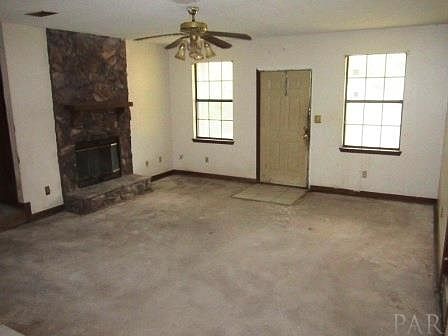 Your very own 3-acre estate complete with a 3/2, 1433 SF home, where you can sit on your front porch, listen to the wind blow softly through the trees, watch the creatures of the forest frolic and smell sweetness of the country, stands at the ready for you to roll up your sleeves and give it your personal touch. As you enter the home, you'll notice the open floor-plan great room with a stone fireplace w/hearth and mantle so you can keep cozy and warm on a chilly winter's night and large windows that allow soul-refreshing sunlight to fill the home. The Master bedroom is split and features a bath with vanity/dressing area that's separated from the shower/toilet area and a walk-in closet. The Galley-style, eat-in kitchen has tons of counters, oodles of cabinets, a breakfast bar, a breakfast nook/dining area and leads into the inside laundry room with a door to the open deck and covered back porch, which is the perfect spot for summer BBQs and fall/Holiday get-togethers with family and friends. It's paradise, really.